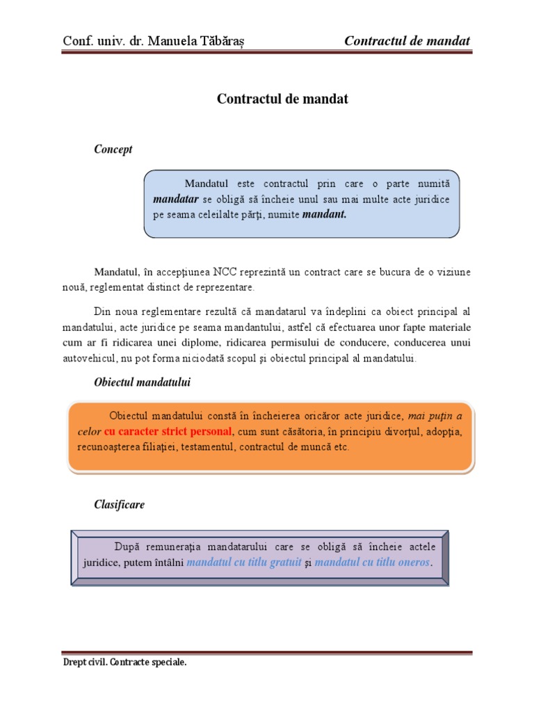 Conceputa sub forma unor note de curs, lucrarea contracte civile speciale in noul cod civil se adreseaza in primul rand studentilor. Ne doit pas être confondu avec mandat en droit pénal suisse. Contractul in temeiul caruia o persoana numita mandant, imputerniceste pe o alta persoana, numita mandatar, sa incheie in numele.