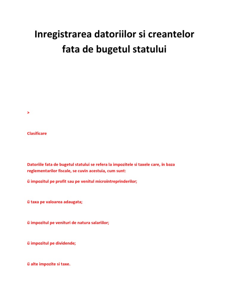 vizitati articolul complet aici : https://www.scribd.com/document/453224561/Document-BT24-pdf Legea bugetului a trecut de votul parlamentului. Printre instrumentele acestor politici se pot. Soldul creditor reprezinta sumele datorate de entitate bugetului statului, iar soldul debitor, sumele cuvenite de la bugetul de stat.