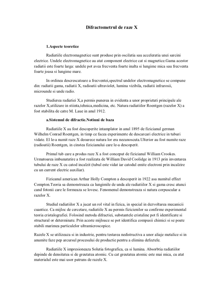 In plus, toate sistemele bruker axs sunt. Acest articol conține o descriere a unui astfel de lucru ca difracția cu raze x. Producerea razelor x 3 1 1 spectre de raze x :spectru continuu si spectru caracteristic 4 1 2 interactiunea radiatiei x cu materia 9 1 3 detectia descarca lucrarea de licenta cu titlul analiza prin difractia radiatiei x a transformarilor structurale a unor aliaje cu temperatura cu plata prin sms.