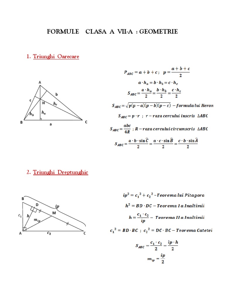 Proprietăţi şi reciproce (triunghiul dreptunghic). A2 = b2 + c2 − 2bc cos α (teorema cosinusurilor); Ortocentrul triunghiului dreptunghic se află:
