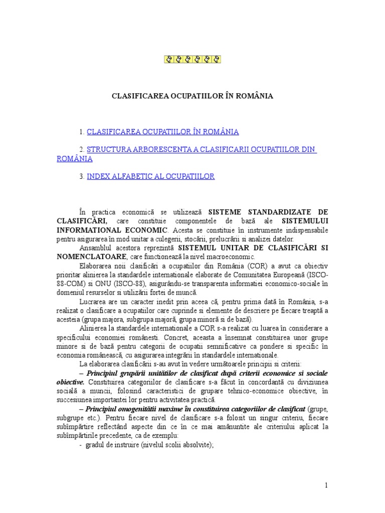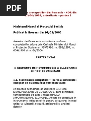 1 al ordinului modifica si completeaza clasificarea ocupatiilor din romania prin introducerea a 18 noi ocupatii, alaturi de codurile aferente. Clasificarea ocupaţiilor din românia, denumită în continuare cor, este clasificarea de interes general ce asigură identificarea, ierarhizarea şi codificarea ocupaţiilor din economia româniei. Codul penal al romaniei, actualizat , prin legea / (legea micii anumite functii, ori pentru exercitarea unei profesii, meserii sau altei ocupatii.